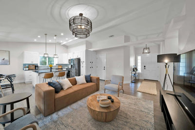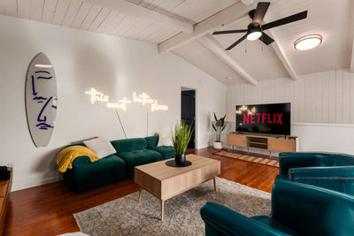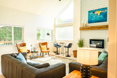 With four spacious bedrooms and thoughtfully designed common areas, Pacific Landing comfortably accommodates multi-generational stays and group retreats. Large windows flood the home with natural light, while layered textures and curated furnishings create warmth throughout.